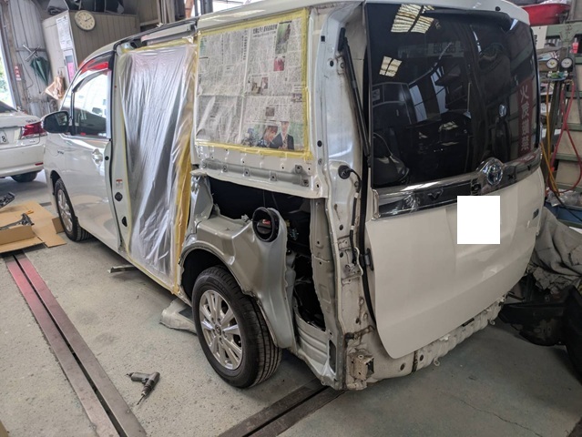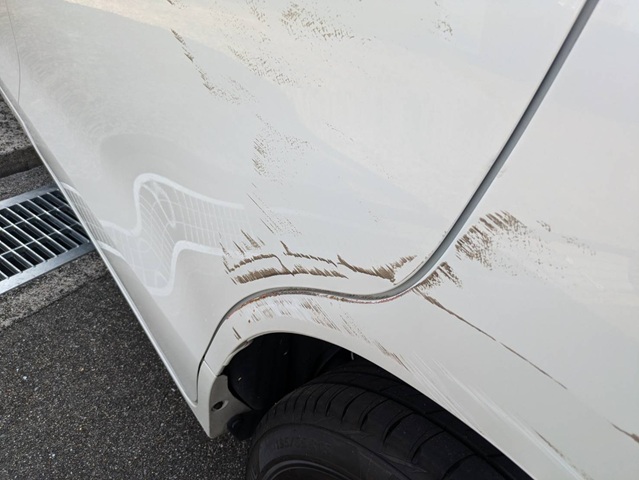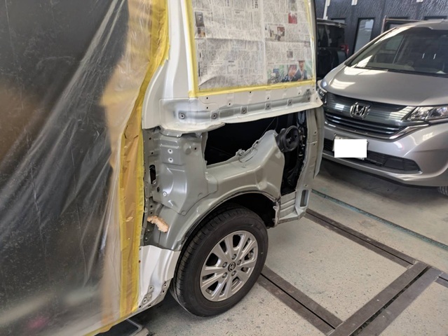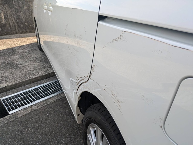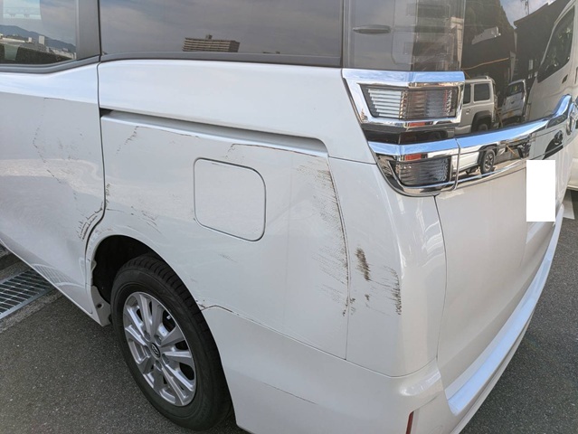 1.スライドドアからクォーターパネル、リヤバンパー、コーナーパネルまで損傷があります。