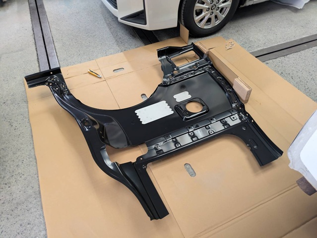 5.新品のパネルです。 何度も車のボディと新品パネルの合わせを行い、隙間がないようしっかり溶接していきます。